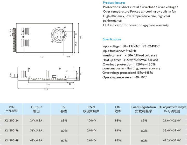 高效率、低溫升、高性價(jià)比 適用于LED顯示、工業(yè)控制 輸入電壓:88-132VAC,176-264VAC 輸入頻率:47~63Hz 沖擊電流:<50A滿載冷態(tài) 保持時(shí)間:≥20ms@230VAC滿載 過載保護(hù):120%-150%自動(dòng)恢復(fù)限;限流保護(hù),自動(dòng)恢復(fù) 過壓保護(hù):115%~145% 運(yùn)行溫度:-20-70℃" />